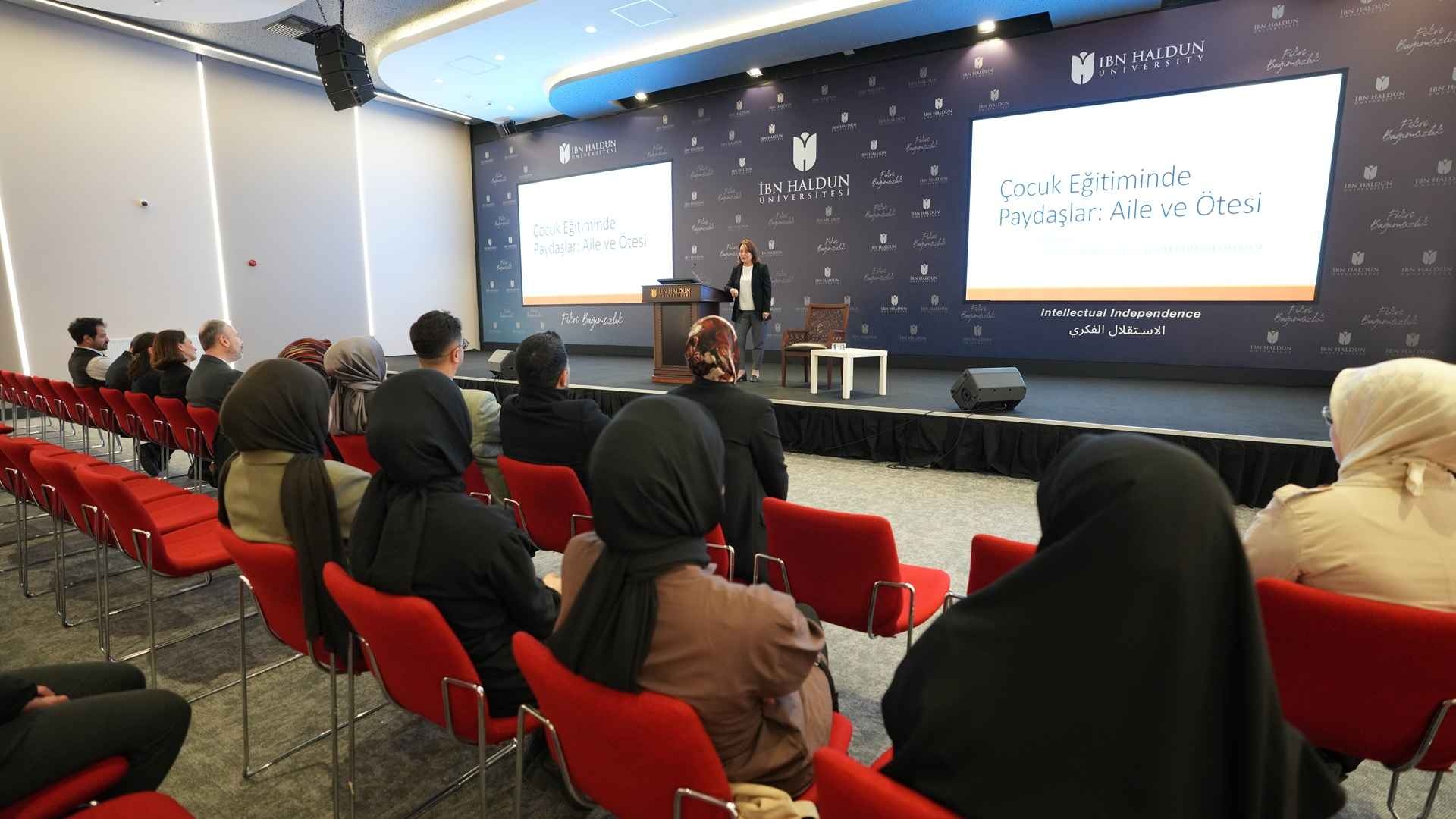 Ardından seminerde Prof. Dr. Ozana Ural, çocuk eğitiminin aile ile sınırlı olmayan çok yönlü bir paydaş ağı tarafından şekillendiğini vurgulayarak; aile, okul, toplumun çocuk gelişimindeki rollerine değindi. Güncel araştırmalardan örneklerin paylaşıldığı konuşmada, sağlıklı bir eğitim ekosistemi oluşturmanın yöntemleri ele alındı.