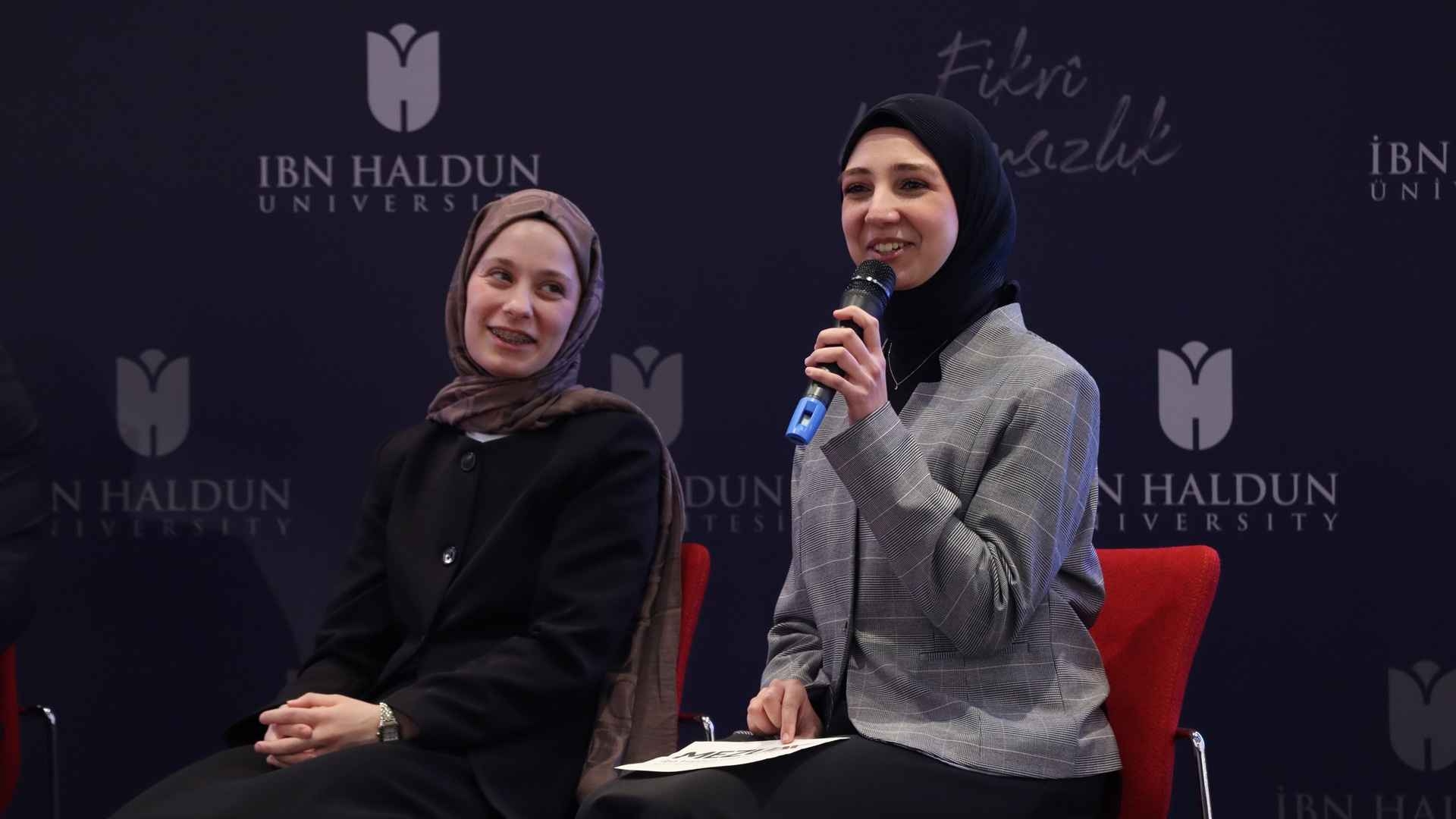 İbn Haldun Üniversitesi Eğitim Bilimleri Fakültesi ile Bilişim ve Eğitim Teknolojileri Kulübü iş birliğiyle düzenlenen MEZUNX etkinliği, 25 Kasım Salı günü saat 13:30’da Medya ve Etkinlik Merkezi Etkinlik Salonu’nda gerçekleştirildi. Etkinlikte, Palet Okulları’nda Uzman Psikolojik Danışman olarak görev yapan mezunumuz Ebrar Kevser Katırcı, Türkiye Maarif Vakfı’nda Araştırma Birimi Görevlisi olarak görev yapan mezunlarımız Niyazi Cem Ödemiş ve Abdullah Ortak ile Boğaziçi Üniversitesi’nde Araştırma Görevlisi olarak görev yapan mezunumuz Halise Merve Samur, öğrencilerimizle bir araya gelerek akademik deneyimlerini, kariyer serüvenlerini ve sektöre yönelik güncel yaklaşımlarını paylaştı.